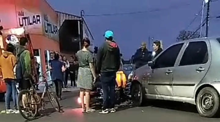 A colisão entre um carro e uma moto na esquina da Avenida Brasil com a Rua Araújo de Porto Alegre, zona norte de Cachoeira do Sul, deixou um motoboy ferido no início da noite deste sábado, 15.