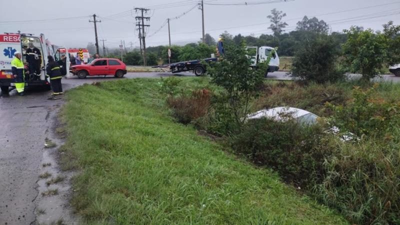 Com a batida, o Fusion saiu da pista e parou em uma vala às margens da RSC-287.