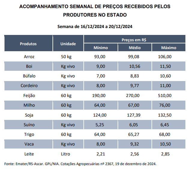 Brasil e Mundo Cotação Rural Rural Últimas Notícias ACOMPANHAMENTO SEMANAL DE PREÇOS RECEBIDOS PELOS PRODUTORES NO ESTADO Francis Soares 20 de dezembro de 2024 Destaque em queda de preço médio para arroz e feijão. Post navigation Previous: Falta de decoração natalina em Cachoeira do Sul gera críticas e frustraçõesNext: Safra 2024/25 deve alcançar recorde de 322,4 milhões de toneladas no Brasil Mais notícias Brasil e Mundo Política Últimas Notícias STF julga nesta segunda a manutenção da prisão preventiva de Jair Bolsonaro Francis Soares 24 de novembro de 2025 Brasil e Mundo Rural Lula assina 28 decretos de desapropriação em territórios quilombolas, mas medida levanta críticas Francis Soares 21 de novembro de 2025 Cidade Últimas Notícias Inadimplência dispara e Prefeitura revela números preocupantes do IPTU e da Taxa de Lixo 2025 Francis Soares 21 de novembro de 2025 Deixe um comentário Cancelar respostaO seu endereço de e-mail não será publicado. Campos obrigatórios são marcados com *Comentário * Nome * E-mail * Site Salvar meus dados neste navegador para a próxima vez que eu comentar. Δ