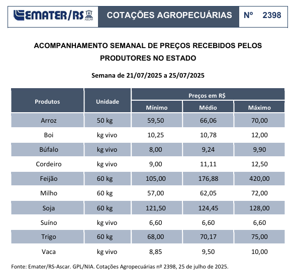 Últimas Notícias Rural ACOMPANHAMENTO SEMANAL DE PREÇOS RECEBIDOS PELOS PRODUTORES NO ESTADO Francis Soares 24 de julho de 2025 COTAÇÃO RURAL | Média da soja apresenta alta na semana. Post navigation Previous: Conab prepara compra de milho diante de safra recorde e queda de preçosNext: Alexandre de Moraes acumula 29 pedidos de impeachment no Senado; mais recente é de Flávio Bolsonaro Mais notícias Brasil e Mundo Política Últimas Notícias STF julga nesta segunda a manutenção da prisão preventiva de Jair Bolsonaro Francis Soares 24 de novembro de 2025 Brasil e Mundo Rural Lula assina 28 decretos de desapropriação em territórios quilombolas, mas medida levanta críticas Francis Soares 21 de novembro de 2025 Cidade Últimas Notícias Inadimplência dispara e Prefeitura revela números preocupantes do IPTU e da Taxa de Lixo 2025 Francis Soares 21 de novembro de 2025 Deixe um comentário Cancelar respostaO seu endereço de e-mail não será publicado. Campos obrigatórios são marcados com *Comentário * Nome * E-mail * Site Salvar meus dados neste navegador para a próxima vez que eu comentar. Δ