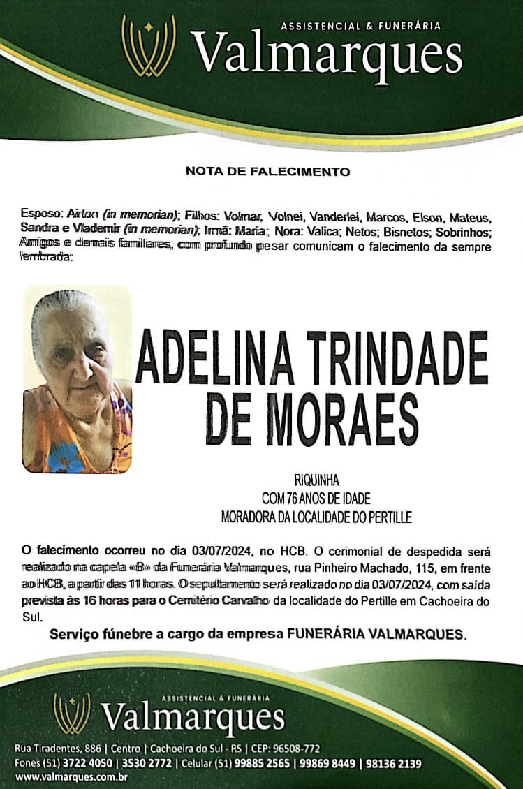 Falecimentos ADELINA TRINDADE DE MORAES Francis Soares 3 de julho de 2024 Nossos sinceros sentimentos aos familiares e amigos! Post navigation Previous: ARACENY BRUM MAGALHÃESNext: Anunciada a Programação de Shows da Oktoberfest 2024 em Santa Cruz do Sul Mais notícias Falecimentos MARION DA SILVA (SÃO NUNCA) Francis Soares 21 de fevereiro de 2025 Falecimentos ROMANI KEGLER NUNES Francis Soares 17 de fevereiro de 2025 Falecimentos ROMARINO “EDILON CARDOSO” PEREIRA Francis Soares 17 de fevereiro de 2025 Deixe um comentário Cancelar respostaO seu endereço de e-mail não será publicado. Campos obrigatórios são marcados com *Comentário * Nome * E-mail * Site Salvar meus dados neste navegador para a próxima vez que eu comentar. Δ