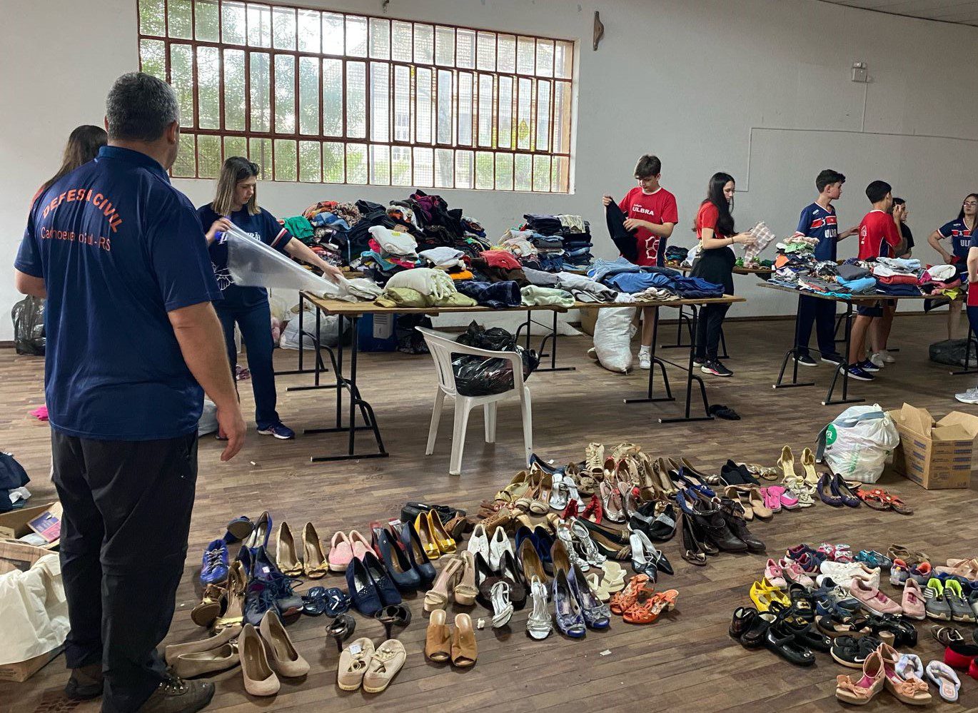 Um total de 32 alunos do 9º ano do Colégio São Pedro auxiliou a Defesa Civil nesta segunda-feira (18) no trabalho de triagem de roupas e calçados doados para serem repassados às famílias em vulnerabilidade.