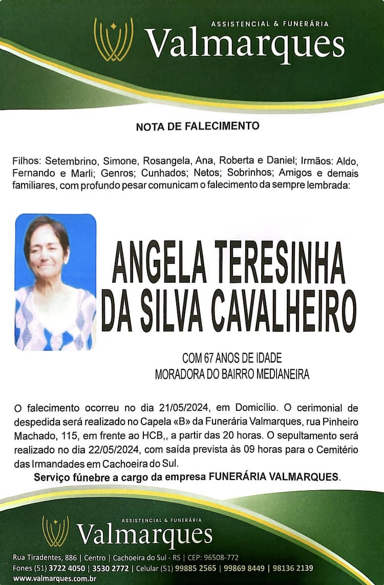 Falecimentos ANGELA TERESINHA DA SILVA CAVALHEIRO Francis Soares 22 de maio de 2024 Post navigation Previous: GUIDO CELIO BORTHNext: Defesa Civil de Cachoeira do Sul é destaque na Marcha em Defesa dos Municípios Mais notícias Falecimentos MARION DA SILVA (SÃO NUNCA) Francis Soares 21 de fevereiro de 2025 Falecimentos ROMANI KEGLER NUNES Francis Soares 17 de fevereiro de 2025 Falecimentos ROMARINO “EDILON CARDOSO” PEREIRA Francis Soares 17 de fevereiro de 2025 Deixe um comentário Cancelar respostaO seu endereço de e-mail não será publicado. Campos obrigatórios são marcados com *Comentário * Nome * E-mail * Site Salvar meus dados neste navegador para a próxima vez que eu comentar. Δ