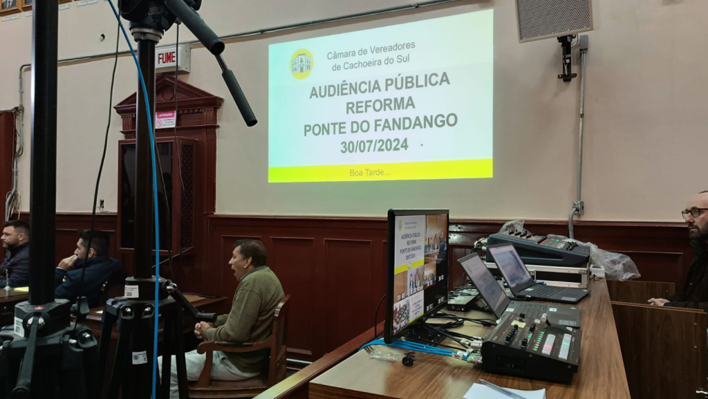 A Câmara teve o Plenário Edgar Müller lotado na tarde desta terça-feira durante audiência pública em que foi apresentado o projeto de reforma da Ponte do Fandango. Representantes do Departamento Nacional de Infraestrutura de Transportes (DNIT) e das empresas responsáveis pela obra expuseram o projeto e responderam dúvidas.