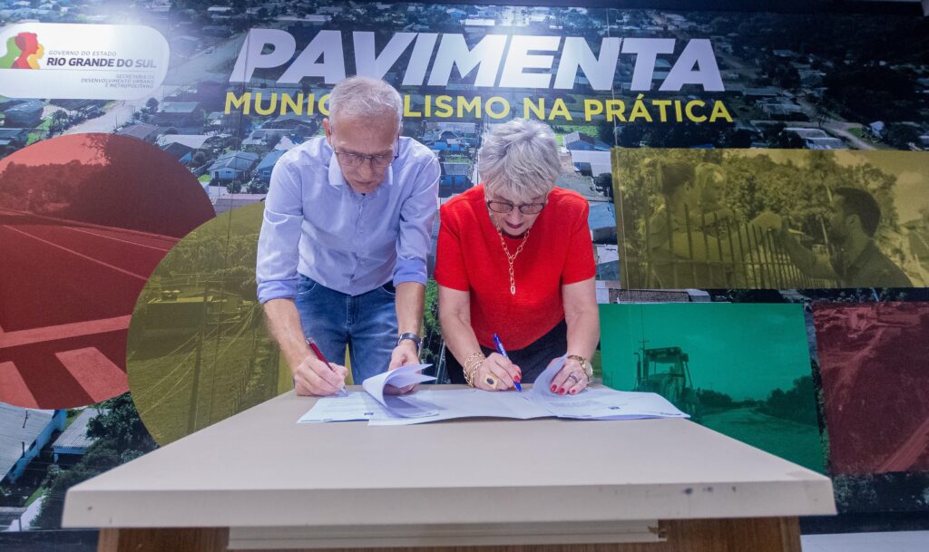 A prefeita municipal, Angela Schuh, e o diretor da UFSM/Cachoeira, Anderson Dal Molin, assinaram com o Secretário Estadual de Desenvolvimento Urbano e Metropolitano, Rafael Mallmann a adesão ao Pavimenta 2, do Governo do Estado. O evento aconteceu em Porto Alegre no final da tarde desta quarta-feira (12).