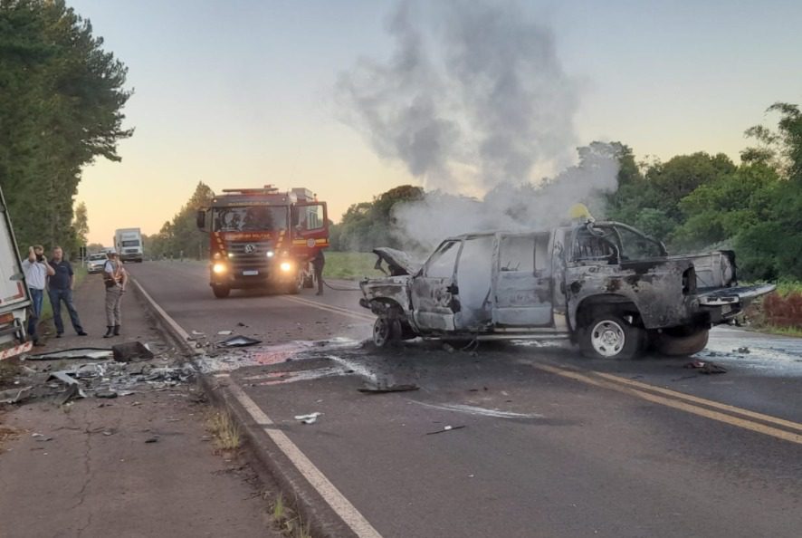Um acidente envolveu um caminhão e uma caminhonete no início da manhã desta quinta-feira, na BR-153, perto do Rincão da Figueira.