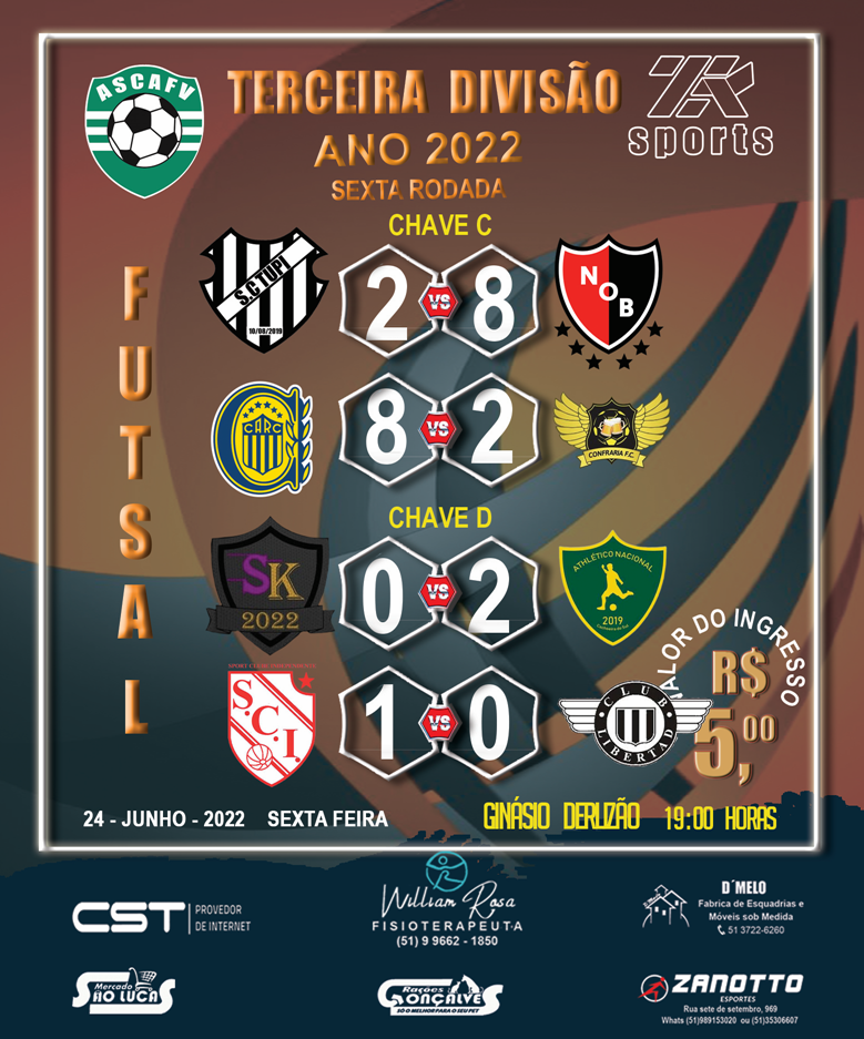 CAMPEONATO MUNICIPAL DE FUTSAL – TERCEIRA DIVISÃO 2022 – SEXTA RODADA