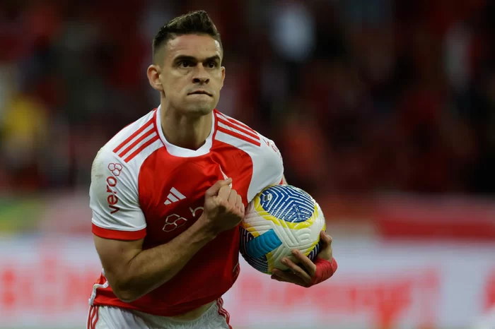 A resposta do Inter foi quase imediata. Aos nove, Wesley fez um cruzamento da esquerda, na medida, na cabeça de Borré. O colombiano foi letal: 1 a 1.