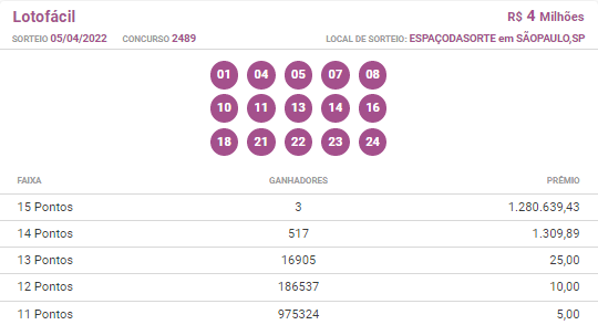 Confira os resultados das loterias do dia 05/04!