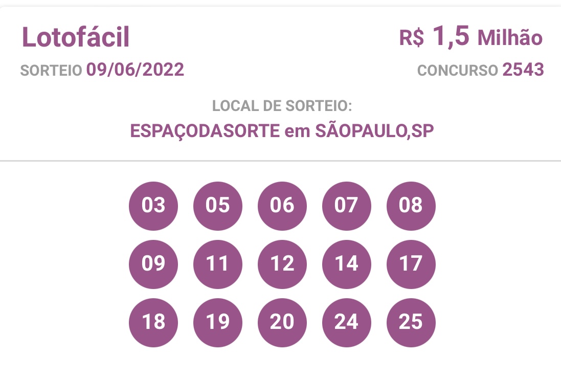 Loterias Confira os resultados das loterias do dia 09/06 admin 10 de junho de 2022 Post navigation Previous: Falecimento / José Dinarte Rosa BatistaNext: Falecimento / Jose Elio Ribeiro Siqueira Mais notícias Loterias Brasil e Mundo Últimas Notícias Mega-Sena pode pagar R$ 46 milhões nesta terça-feira; apostas vão até as 19h Francis Soares 15 de julho de 2025 Brasil e Mundo Loterias Últimas Notícias Mega-Sena sorteia R$ 28 milhões nesta terça-feira Francis Soares 8 de julho de 2025 Brasil e Mundo Loterias Últimas Notícias Apostador de Goiânia leva sozinho prêmio de R$ 50,7 milhões da Mega-Sena Francis Soares 2 de julho de 2025 Deixe um comentário Cancelar respostaO seu endereço de e-mail não será publicado. Campos obrigatórios são marcados com *Comentário * Nome * E-mail * Site Salvar meus dados neste navegador para a próxima vez que eu comentar. Δ