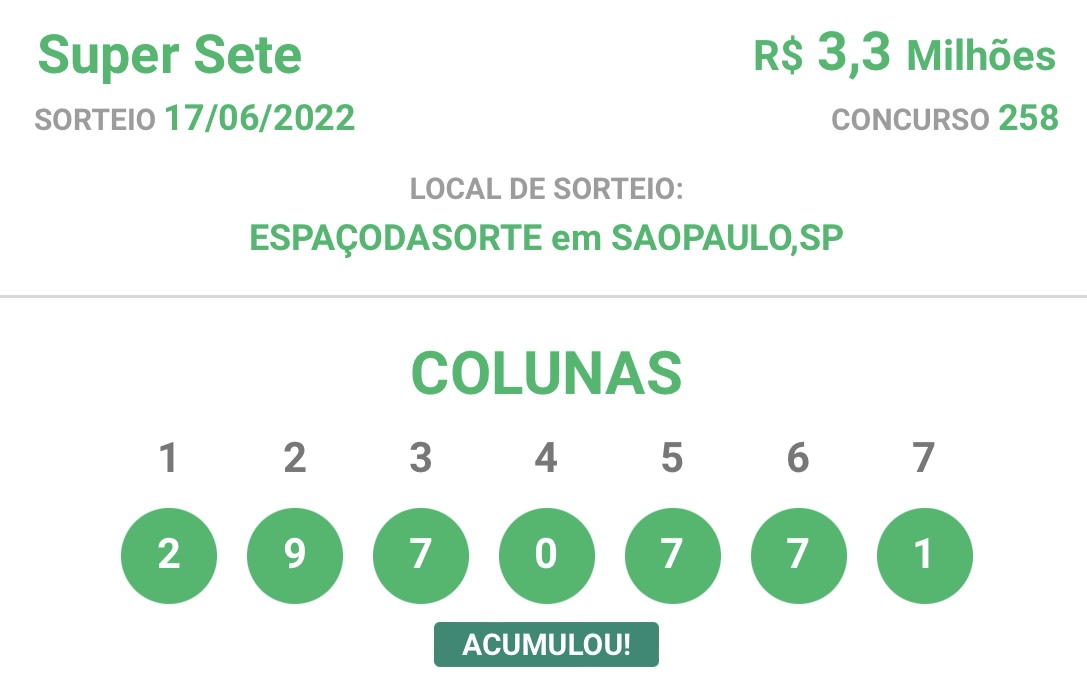 Loterias Confira os resultados das loterias do dia 17/06 admin 18 de junho de 2022 Post navigation Previous: Bolsonaro propõe CPI da Petrobras: “Traição com o povo brasileiro” Next: Falecimento / Ely Antonio Teixeira Duarte Mais notícias Loterias Brasil e Mundo Últimas Notícias Mega-Sena pode pagar R$ 46 milhões nesta terça-feira; apostas vão até as 19h Francis Soares 15 de julho de 2025 Brasil e Mundo Loterias Últimas Notícias Mega-Sena sorteia R$ 28 milhões nesta terça-feira Francis Soares 8 de julho de 2025 Brasil e Mundo Loterias Últimas Notícias Apostador de Goiânia leva sozinho prêmio de R$ 50,7 milhões da Mega-Sena Francis Soares 2 de julho de 2025 Deixe um comentário Cancelar respostaO seu endereço de e-mail não será publicado. Campos obrigatórios são marcados com *Comentário * Nome * E-mail * Site Salvar meus dados neste navegador para a próxima vez que eu comentar. Δ