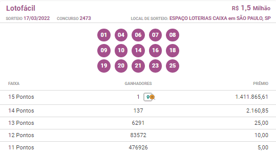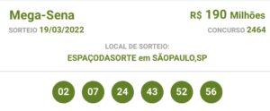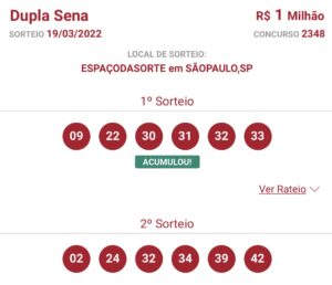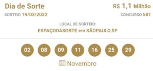 Loterias Confira os resultados das loterias do dia 19/03! admin 20 de março de 2022 Post navigation Previous: Confira os resultados das loterias do dia 18/03!Next: Falecimento / Laura Zulmira da Silva Ribeiro Mais notícias Loterias Brasil e Mundo Últimas Notícias Mega-Sena pode pagar R$ 46 milhões nesta terça-feira; apostas vão até as 19h Francis Soares 15 de julho de 2025 Brasil e Mundo Loterias Últimas Notícias Mega-Sena sorteia R$ 28 milhões nesta terça-feira Francis Soares 8 de julho de 2025 Brasil e Mundo Loterias Últimas Notícias Apostador de Goiânia leva sozinho prêmio de R$ 50,7 milhões da Mega-Sena Francis Soares 2 de julho de 2025 Deixe um comentário Cancelar respostaO seu endereço de e-mail não será publicado. Campos obrigatórios são marcados com *Comentário * Nome * E-mail * Site Salvar meus dados neste navegador para a próxima vez que eu comentar. Δ