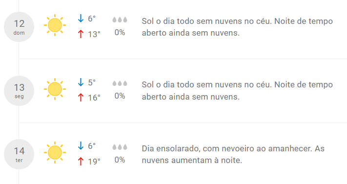 Cachoeira do Sul Cidade Confira previsão do tempo para início da semana! admin 12 de junho de 2022 Post navigation Previous: Confira os resultados das loterias do dia 11/06Next: Caravana Social foi um sucesso na Escola Getúlio Vargas. Confira fotos. Mais notícias Cachoeira do Sul Cidade Clima Previsão do Tempo para Cachoeira do Sul (24 a 30 de novembro de 2025) Francis Soares 24 de novembro de 2025 Cidade Últimas Notícias Inadimplência dispara e Prefeitura revela números preocupantes do IPTU e da Taxa de Lixo 2025 Francis Soares 21 de novembro de 2025 Cidade Últimas Notícias Inmetro fiscaliza postos de combustíveis em Cachoeira do Sul com acompanhamento do Procon Francis Soares 20 de novembro de 2025 Deixe um comentário Cancelar respostaO seu endereço de e-mail não será publicado. Campos obrigatórios são marcados com *Comentário * Nome * E-mail * Site Salvar meus dados neste navegador para a próxima vez que eu comentar. Δ