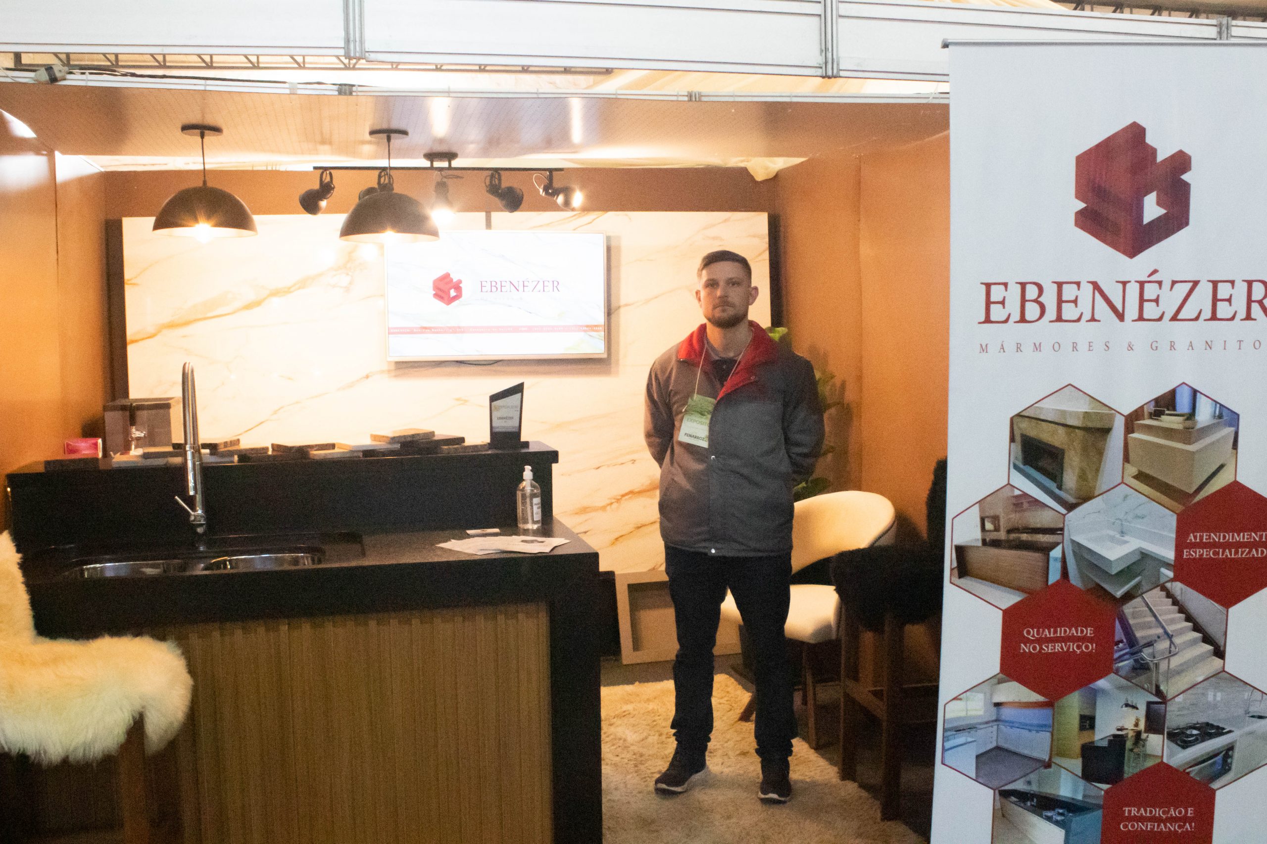 Ebenézer SG Mármores e Granitos está com seu estande personalizado no pavilhão da 22ª Fenarroz com material incrível esperando você.