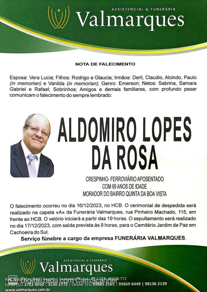 Falecimentos Últimas Notícias FALECIMENTO : ALDOMIRO LOPES DA ROSA Francis Soares 16 de dezembro de 2023 Post navigation Previous: Abadá-Capoeira realiza cerimônia de Batizado e Troca de CordasNext: O Natal Luz e Encanto de Novo Cabrais será realizado neste DOMINGO (17) Mais notícias Brasil e Mundo Política Últimas Notícias STF julga nesta segunda a manutenção da prisão preventiva de Jair Bolsonaro Francis Soares 24 de novembro de 2025 Cidade Últimas Notícias Inadimplência dispara e Prefeitura revela números preocupantes do IPTU e da Taxa de Lixo 2025 Francis Soares 21 de novembro de 2025 Cidade Últimas Notícias Inmetro fiscaliza postos de combustíveis em Cachoeira do Sul com acompanhamento do Procon Francis Soares 20 de novembro de 2025 Deixe um comentário Cancelar respostaO seu endereço de e-mail não será publicado. Campos obrigatórios são marcados com *Comentário * Nome * E-mail * Site Salvar meus dados neste navegador para a próxima vez que eu comentar. Δ