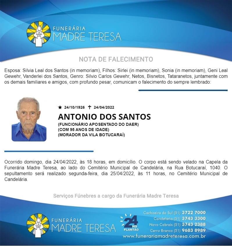 Falecimentos Falecimento / Antonio dos Santos admin 25 de abril de 2022 Post navigation Previous: Falecimemto / Geceli Carlos GonçalvesNext: Rodrigo Mussi está mais lúcido e ativo, segundo novo boletim médico Mais notícias Falecimentos MARION DA SILVA (SÃO NUNCA) Francis Soares 21 de fevereiro de 2025 Falecimentos ROMANI KEGLER NUNES Francis Soares 17 de fevereiro de 2025 Falecimentos ROMARINO “EDILON CARDOSO” PEREIRA Francis Soares 17 de fevereiro de 2025 Deixe um comentário Cancelar respostaO seu endereço de e-mail não será publicado. Campos obrigatórios são marcados com *Comentário * Nome * E-mail * Site Salvar meus dados neste navegador para a próxima vez que eu comentar. Δ