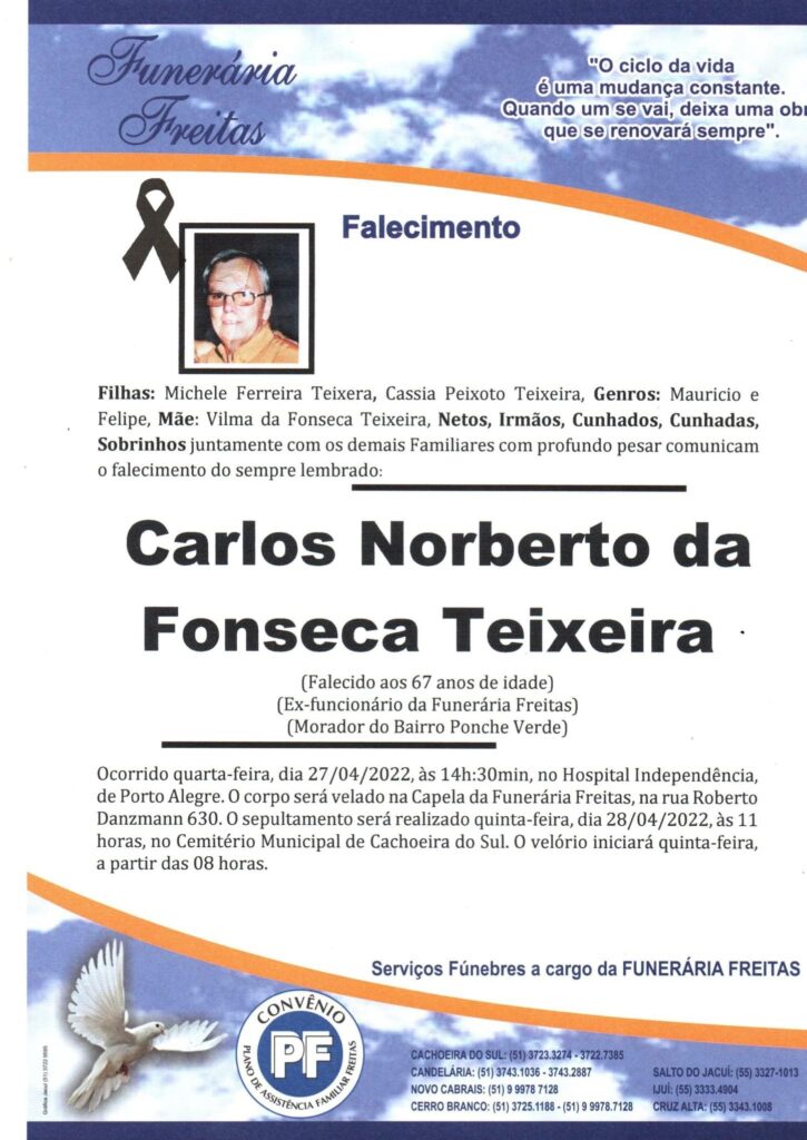 Falecimento / Carlos Norberto da Fonseca Teixeira
