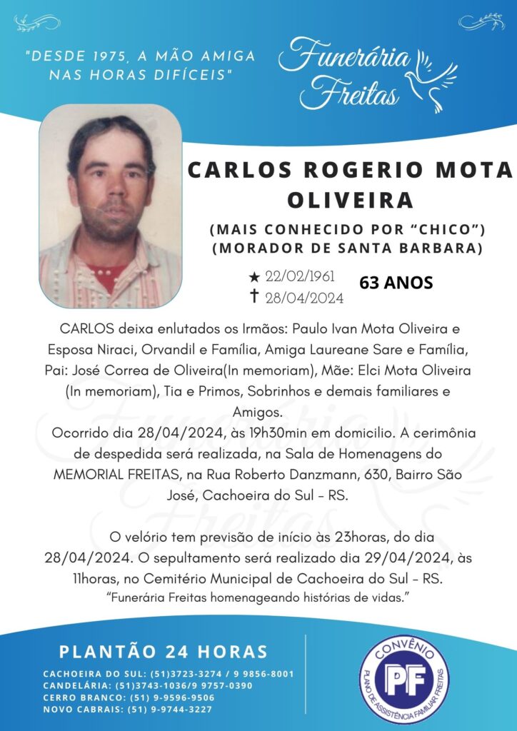 Falecimentos FALECIMENTO: CARLOS ROGERIO MOTA OLIVEIRA (CHICO) Francis Soares 29 de abril de 2024 Post navigation Previous: Brigada Militar prende suspeito de furto no Bairro CarvalhoNext: Segunda-feira inicia com chuva, mas terá aberturas de sol no RS Mais notícias Falecimentos MARION DA SILVA (SÃO NUNCA) Francis Soares 21 de fevereiro de 2025 Falecimentos ROMANI KEGLER NUNES Francis Soares 17 de fevereiro de 2025 Falecimentos ROMARINO “EDILON CARDOSO” PEREIRA Francis Soares 17 de fevereiro de 2025 Deixe um comentário Cancelar respostaO seu endereço de e-mail não será publicado. Campos obrigatórios são marcados com *Comentário * Nome * E-mail * Site Salvar meus dados neste navegador para a próxima vez que eu comentar. Δ