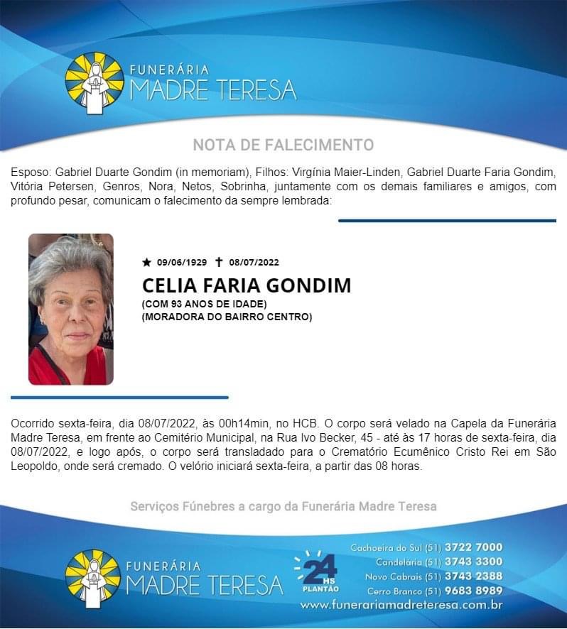Falecimentos Falecimento / Celia Faria Gondim admin 8 de julho de 2022 Post navigation Previous: Prefeitura de Cachoeira do Sul será parceira da 3ª Exposição Estadual de OrquídeasNext: Falecimento / Joice Neto Souza Mais notícias Falecimentos MARION DA SILVA (SÃO NUNCA) Francis Soares 21 de fevereiro de 2025 Falecimentos ROMANI KEGLER NUNES Francis Soares 17 de fevereiro de 2025 Falecimentos ROMARINO “EDILON CARDOSO” PEREIRA Francis Soares 17 de fevereiro de 2025 Deixe um comentário Cancelar respostaO seu endereço de e-mail não será publicado. Campos obrigatórios são marcados com *Comentário * Nome * E-mail * Site Salvar meus dados neste navegador para a próxima vez que eu comentar. Δ
