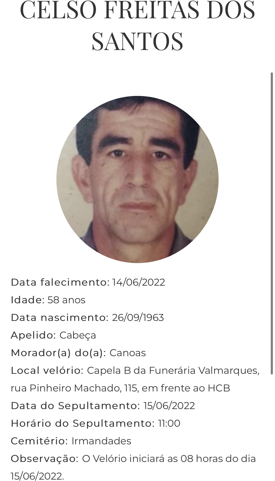 Falecimento / Celso Freitas dos Santos