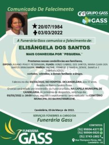 Falecimentos Falecimento / Elisângela dos Santos admin 3 de março de 2022 Post navigation Previous: Candelária recebe R$ 200 mil para SaúdeNext: Confira as loterias do dia 02/03! Mais notícias Falecimentos MARION DA SILVA (SÃO NUNCA) Francis Soares 21 de fevereiro de 2025 Falecimentos ROMANI KEGLER NUNES Francis Soares 17 de fevereiro de 2025 Falecimentos ROMARINO “EDILON CARDOSO” PEREIRA Francis Soares 17 de fevereiro de 2025 Deixe um comentário Cancelar respostaO seu endereço de e-mail não será publicado. Campos obrigatórios são marcados com *Comentário * Nome * E-mail * Site Salvar meus dados neste navegador para a próxima vez que eu comentar. Δ