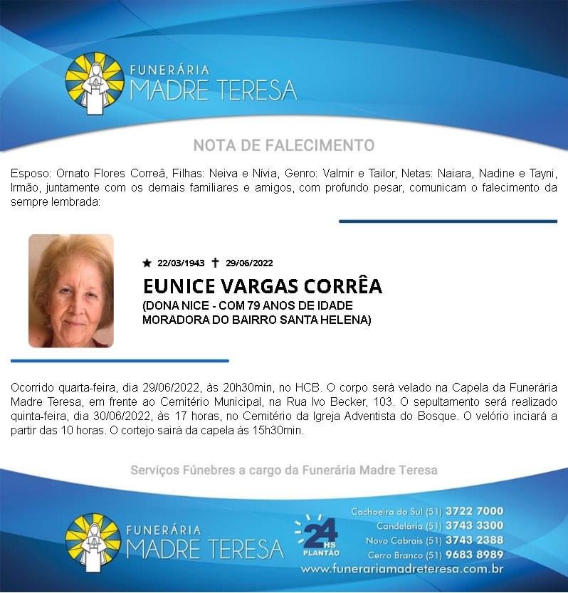 Falecimentos Falecimento / Eunice Vargas Corrêa admin 30 de junho de 2022 Post navigation Previous: Falecimento / Ione de Oliveira LovatoNext: Falecimento / Francisco Jornandes Rodrigues Porto Mais notícias Falecimentos MARION DA SILVA (SÃO NUNCA) Francis Soares 21 de fevereiro de 2025 Falecimentos ROMANI KEGLER NUNES Francis Soares 17 de fevereiro de 2025 Falecimentos ROMARINO “EDILON CARDOSO” PEREIRA Francis Soares 17 de fevereiro de 2025 Deixe um comentário Cancelar respostaO seu endereço de e-mail não será publicado. Campos obrigatórios são marcados com *Comentário * Nome * E-mail * Site Salvar meus dados neste navegador para a próxima vez que eu comentar. Δ