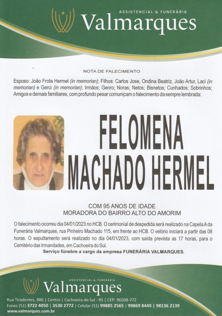 Falecimentos Falecimento / Felomena Machado Hermel Rádio Cachoeira1 4 de janeiro de 2023 Post navigation Previous: Mega-Sena sorteia nesta quarta-feira prêmio estimado em R$ 3 milhõesNext: Romeo da Silva Fagundes Mais notícias Falecimentos MARION DA SILVA (SÃO NUNCA) Francis Soares 21 de fevereiro de 2025 Falecimentos ROMANI KEGLER NUNES Francis Soares 17 de fevereiro de 2025 Falecimentos ROMARINO “EDILON CARDOSO” PEREIRA Francis Soares 17 de fevereiro de 2025 Deixe um comentário Cancelar respostaO seu endereço de e-mail não será publicado. Campos obrigatórios são marcados com *Comentário * Nome * E-mail * Site Salvar meus dados neste navegador para a próxima vez que eu comentar. Δ