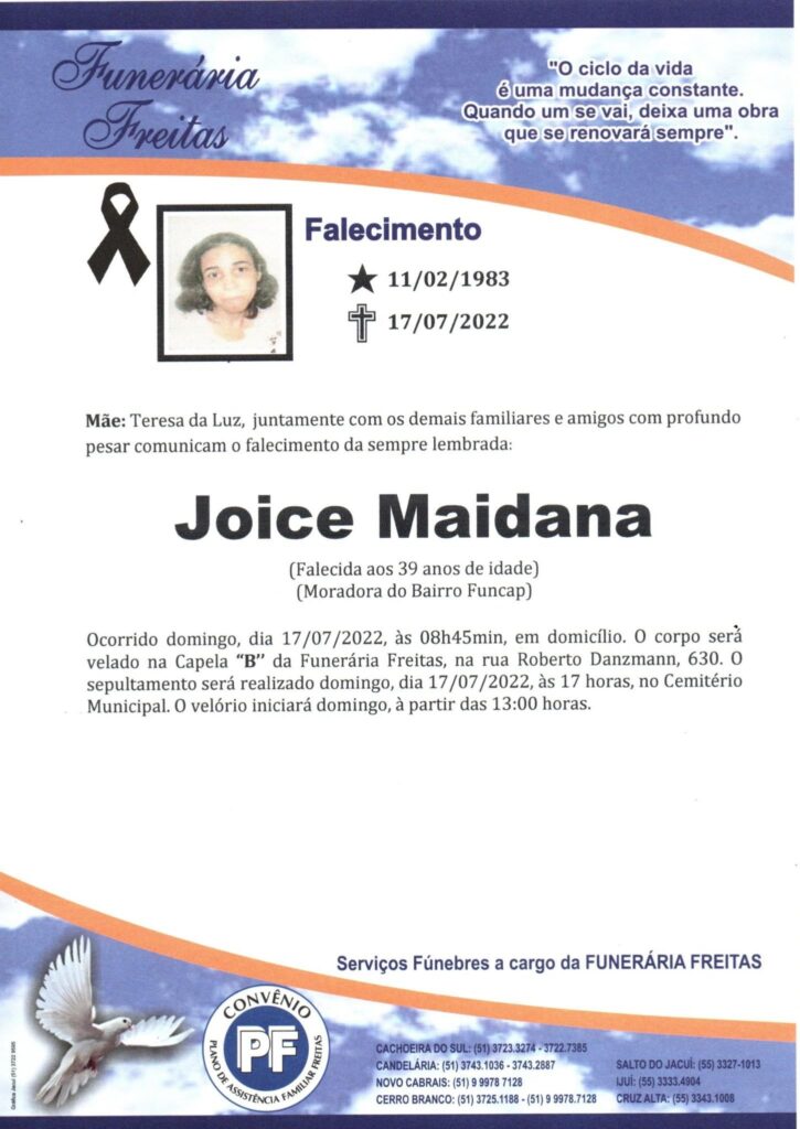 Falecimentos Falecimento / Joice Maidana admin 17 de julho de 2022 Post navigation Previous: Mulher Cachoeirense é presa pela Brigada MilitarNext: Falecimento / Waldemar Lopes Mais notícias Falecimentos MARION DA SILVA (SÃO NUNCA) Francis Soares 21 de fevereiro de 2025 Falecimentos ROMANI KEGLER NUNES Francis Soares 17 de fevereiro de 2025 Falecimentos ROMARINO “EDILON CARDOSO” PEREIRA Francis Soares 17 de fevereiro de 2025 Deixe um comentário Cancelar respostaO seu endereço de e-mail não será publicado. Campos obrigatórios são marcados com *Comentário * Nome * E-mail * Site Salvar meus dados neste navegador para a próxima vez que eu comentar. Δ