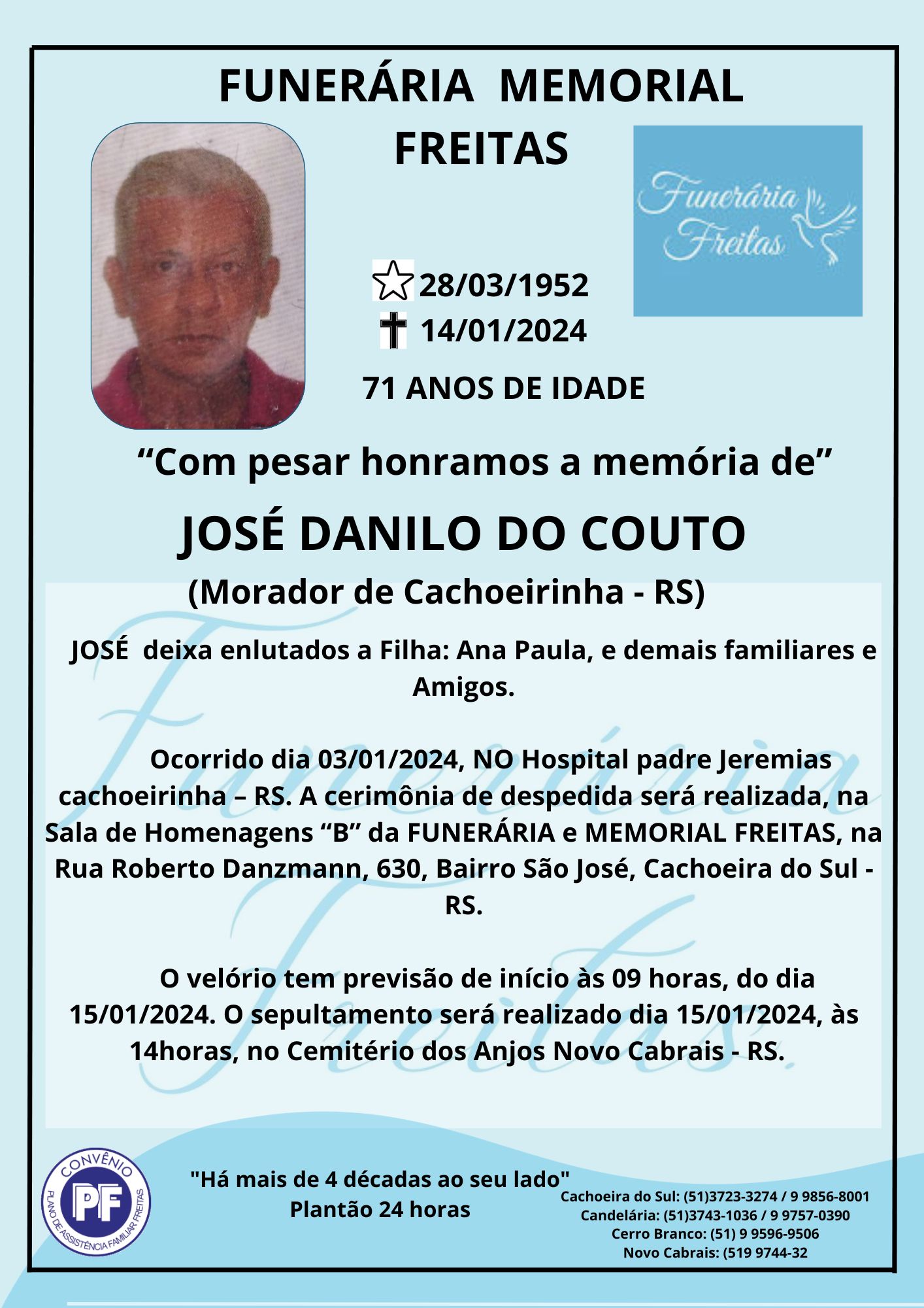 Falecimentos FALECIMENTO: JOSÉ DANILO DO COUTO Francis Soares 15 de janeiro de 2024 Post navigation Previous: Teto das aposentadorias do INSS aumenta para R$ 7.786,01Next: Cristiano Becker assume a Prefeitura nas férias de Rim Mais notícias Falecimentos MARION DA SILVA (SÃO NUNCA) Francis Soares 21 de fevereiro de 2025 Falecimentos ROMANI KEGLER NUNES Francis Soares 17 de fevereiro de 2025 Falecimentos ROMARINO “EDILON CARDOSO” PEREIRA Francis Soares 17 de fevereiro de 2025 Deixe um comentário Cancelar respostaO seu endereço de e-mail não será publicado. Campos obrigatórios são marcados com *Comentário * Nome * E-mail * Site Salvar meus dados neste navegador para a próxima vez que eu comentar. Δ
