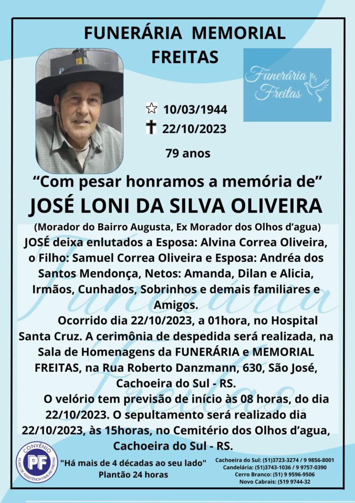 Falecimentos FALECIMENTO: JOSÉ LONI DA SILVA OLIVEIRA Radio Cachoeira 22 de outubro de 2023 Post navigation Previous: Grêmio perde de 3 a 0 fora de casaNext: FALECIMENTO: ANDRÉA CARVALHO SILVA Mais notícias Falecimentos MARION DA SILVA (SÃO NUNCA) Francis Soares 21 de fevereiro de 2025 Falecimentos ROMANI KEGLER NUNES Francis Soares 17 de fevereiro de 2025 Falecimentos ROMARINO “EDILON CARDOSO” PEREIRA Francis Soares 17 de fevereiro de 2025 Deixe um comentário Cancelar respostaO seu endereço de e-mail não será publicado. Campos obrigatórios são marcados com *Comentário * Nome * E-mail * Site Salvar meus dados neste navegador para a próxima vez que eu comentar. Δ