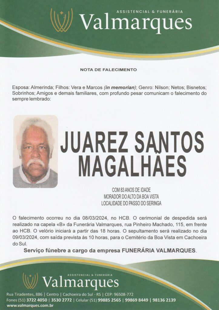 Falecimentos FALECIMENTO: JUAREZ SANTOS MAGALHÃES Francis Soares 8 de março de 2024 Post navigation Previous: CANDELÁRIA | Pavilhão de shows começa a ganhar formaNext: FALECIMENTO: SELVIO JOSÉ DE OLIVEIRA Mais notícias Falecimentos MARION DA SILVA (SÃO NUNCA) Francis Soares 21 de fevereiro de 2025 Falecimentos ROMANI KEGLER NUNES Francis Soares 17 de fevereiro de 2025 Falecimentos ROMARINO “EDILON CARDOSO” PEREIRA Francis Soares 17 de fevereiro de 2025 Deixe um comentário Cancelar respostaO seu endereço de e-mail não será publicado. Campos obrigatórios são marcados com *Comentário * Nome * E-mail * Site Salvar meus dados neste navegador para a próxima vez que eu comentar. Δ