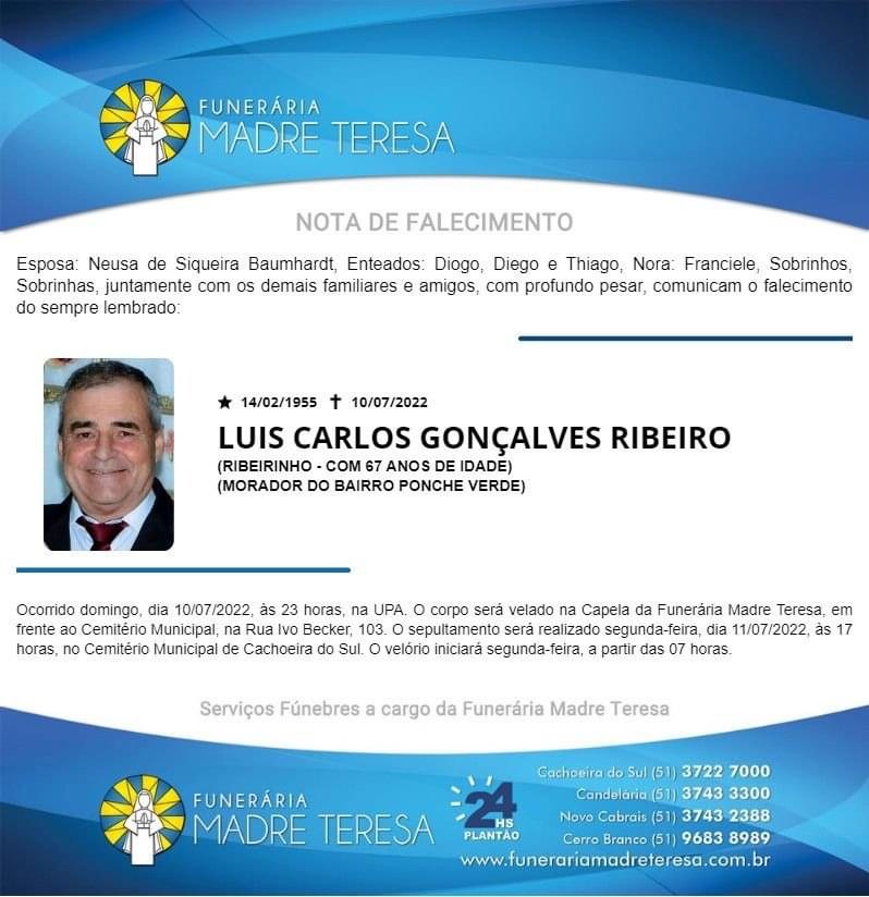 Falecimentos Falecimento / Luis Carlos Gonçalves Ribeiro admin 11 de julho de 2022 Post navigation Previous: Instalação do Pórtico de Cachoeira do Sul foi finalizada na última semana.Next: Falecimento / Itacir Miguel Betat Dias Mais notícias Falecimentos MARION DA SILVA (SÃO NUNCA) Francis Soares 21 de fevereiro de 2025 Falecimentos ROMANI KEGLER NUNES Francis Soares 17 de fevereiro de 2025 Falecimentos ROMARINO “EDILON CARDOSO” PEREIRA Francis Soares 17 de fevereiro de 2025 Deixe um comentário Cancelar respostaO seu endereço de e-mail não será publicado. Campos obrigatórios são marcados com *Comentário * Nome * E-mail * Site Salvar meus dados neste navegador para a próxima vez que eu comentar. Δ