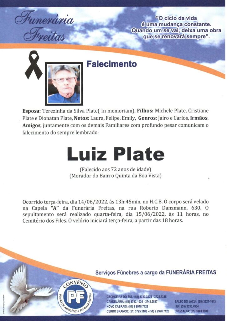 Falecimentos Falecimento / Luiz Plate admin 14 de junho de 2022 Post navigation Previous: Ebenézer SG Mármores e Granitos presente na 22ª Fenarroz.Next: Visitação das escolas na Fenarroz 2022 Mais notícias Falecimentos MARION DA SILVA (SÃO NUNCA) Francis Soares 21 de fevereiro de 2025 Falecimentos ROMANI KEGLER NUNES Francis Soares 17 de fevereiro de 2025 Falecimentos ROMARINO “EDILON CARDOSO” PEREIRA Francis Soares 17 de fevereiro de 2025 Deixe um comentário Cancelar respostaO seu endereço de e-mail não será publicado. Campos obrigatórios são marcados com *Comentário * Nome * E-mail * Site Salvar meus dados neste navegador para a próxima vez que eu comentar. Δ