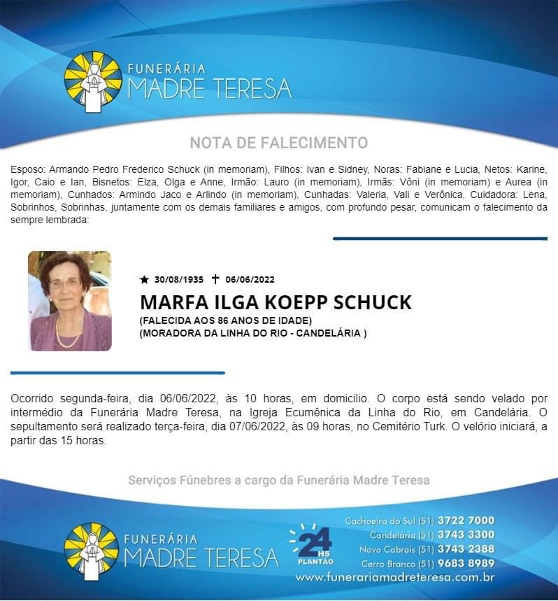Falecimentos Falecimento / Marfa Ilga Koepp Schuck admin 6 de junho de 2022 Post navigation Previous: Supermutirão contra a dengue quinta-feira no Tibiriçá Next: ESF Carvalho garante repasse do Projeto Nosso Posto de Saúde Mais notícias Falecimentos MARION DA SILVA (SÃO NUNCA) Francis Soares 21 de fevereiro de 2025 Falecimentos ROMANI KEGLER NUNES Francis Soares 17 de fevereiro de 2025 Falecimentos ROMARINO “EDILON CARDOSO” PEREIRA Francis Soares 17 de fevereiro de 2025 Deixe um comentário Cancelar respostaO seu endereço de e-mail não será publicado. Campos obrigatórios são marcados com *Comentário * Nome * E-mail * Site Salvar meus dados neste navegador para a próxima vez que eu comentar. Δ