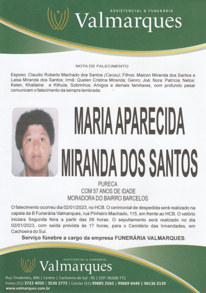 Falecimentos Falecimento / Maria Aparecida Miranda dos Santos Rádio Cachoeira1 2 de janeiro de 2023 Post navigation Previous: Calendário de pagamentos do Auxílio Brasil para 2023; confiraNext: Novas regras do Pix passam a valer a partir de hoje Mais notícias Falecimentos MARION DA SILVA (SÃO NUNCA) Francis Soares 21 de fevereiro de 2025 Falecimentos ROMANI KEGLER NUNES Francis Soares 17 de fevereiro de 2025 Falecimentos ROMARINO “EDILON CARDOSO” PEREIRA Francis Soares 17 de fevereiro de 2025 Deixe um comentário Cancelar respostaO seu endereço de e-mail não será publicado. Campos obrigatórios são marcados com *Comentário * Nome * E-mail * Site Salvar meus dados neste navegador para a próxima vez que eu comentar. Δ