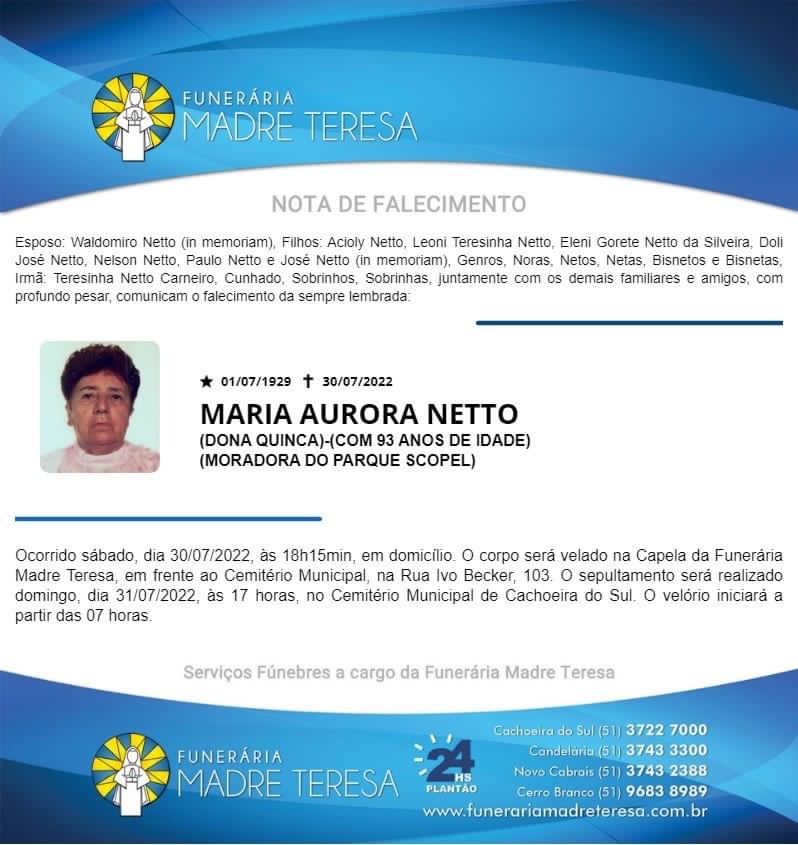 Falecimentos Falecimento / Maria Aurora Netto admin 30 de julho de 2022 Post navigation Previous: Coronel Francisco confirma candidatura para Deputado Estadual em convenção do PP.Next: Falecimento / Violeta Odete Ayres Lopes Mais notícias Falecimentos MARION DA SILVA (SÃO NUNCA) Francis Soares 21 de fevereiro de 2025 Falecimentos ROMANI KEGLER NUNES Francis Soares 17 de fevereiro de 2025 Falecimentos ROMARINO “EDILON CARDOSO” PEREIRA Francis Soares 17 de fevereiro de 2025 Deixe um comentário Cancelar respostaO seu endereço de e-mail não será publicado. Campos obrigatórios são marcados com *Comentário * Nome * E-mail * Site Salvar meus dados neste navegador para a próxima vez que eu comentar. Δ