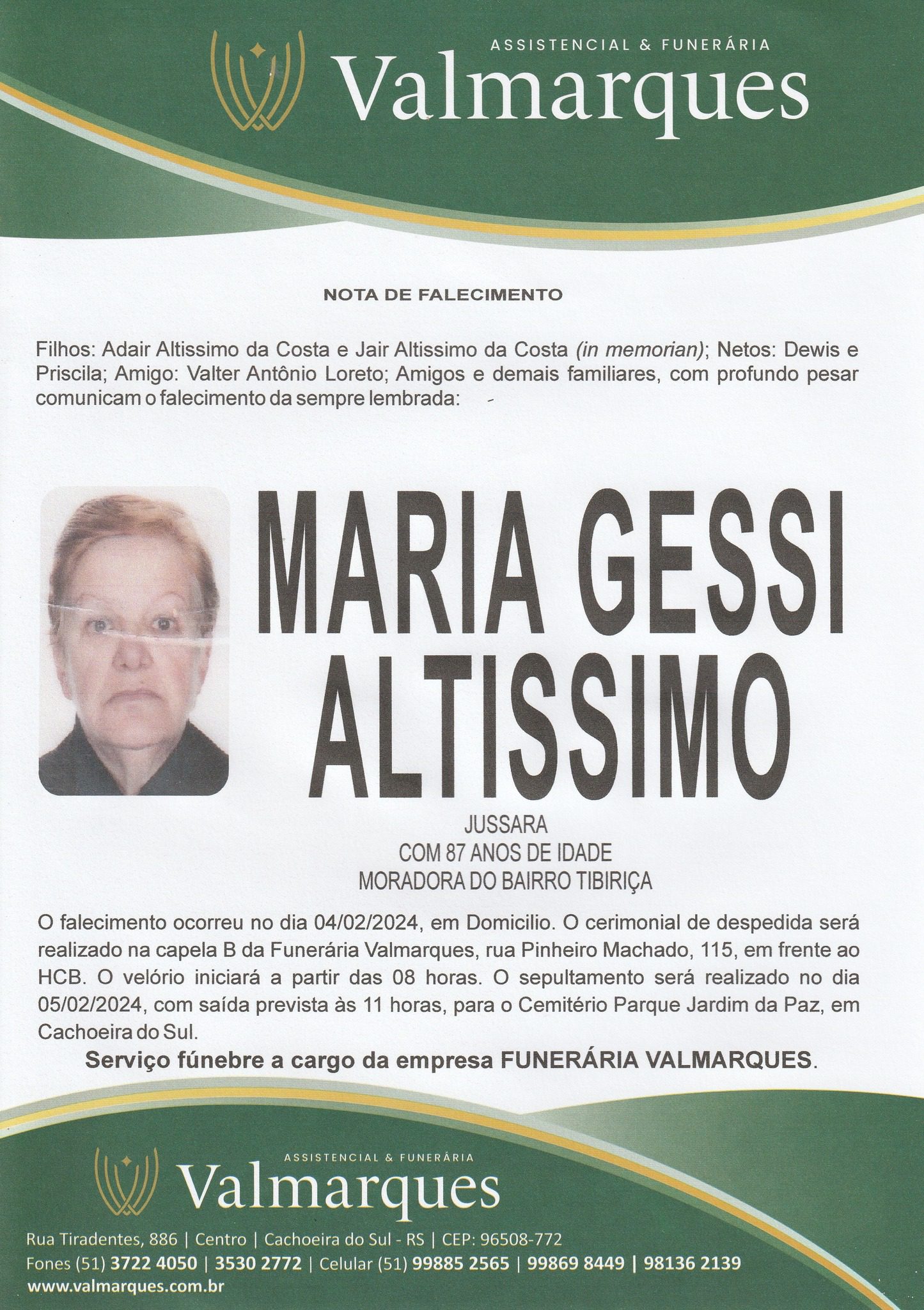Falecimentos FALECIMENTO: MARIA GESSI ALTISSIMO Francis Soares 5 de fevereiro de 2024 Post navigation Previous: Criança de 6 anos é atingida por estilhaços de disparos de arma de fogo no Centro de Rio PardoNext: FALECIMENTO: JOSÉ MARQUES DE ANUNCIAÇÃO Mais notícias Falecimentos MARION DA SILVA (SÃO NUNCA) Francis Soares 21 de fevereiro de 2025 Falecimentos ROMANI KEGLER NUNES Francis Soares 17 de fevereiro de 2025 Falecimentos ROMARINO “EDILON CARDOSO” PEREIRA Francis Soares 17 de fevereiro de 2025 Deixe um comentário Cancelar respostaO seu endereço de e-mail não será publicado. Campos obrigatórios são marcados com *Comentário * Nome * E-mail * Site Salvar meus dados neste navegador para a próxima vez que eu comentar. Δ