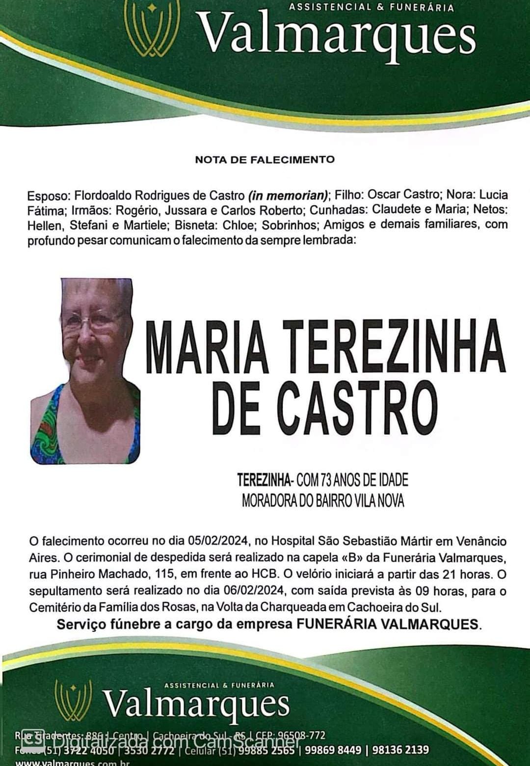 Falecimentos FALECIMENTO: MARIA TEREZINHA DE CASTRO Francis Soares 5 de fevereiro de 2024 Post navigation Previous: FALECIMENTO: SÉRGIO LORETO PEDROSONext: Colisão entre motocicleta e carro na Moron Mais notícias Falecimentos MARION DA SILVA (SÃO NUNCA) Francis Soares 21 de fevereiro de 2025 Falecimentos ROMANI KEGLER NUNES Francis Soares 17 de fevereiro de 2025 Falecimentos ROMARINO “EDILON CARDOSO” PEREIRA Francis Soares 17 de fevereiro de 2025 Deixe um comentário Cancelar respostaO seu endereço de e-mail não será publicado. Campos obrigatórios são marcados com *Comentário * Nome * E-mail * Site Salvar meus dados neste navegador para a próxima vez que eu comentar. Δ