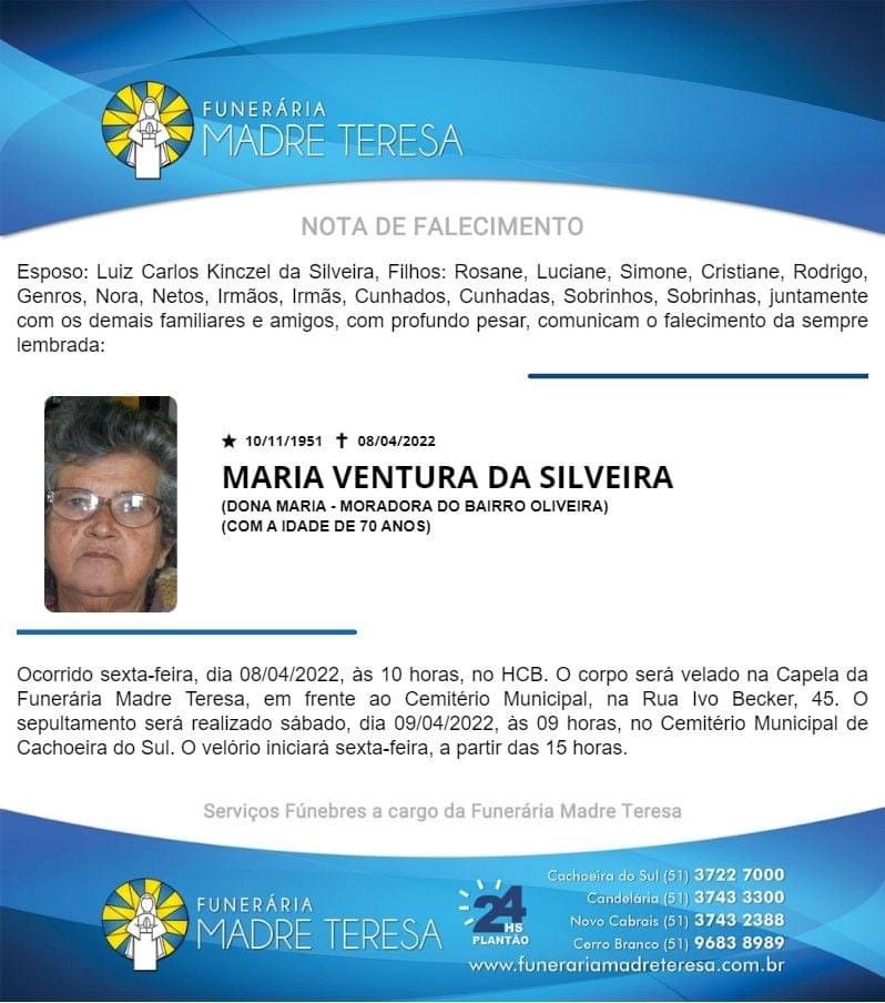 Falecimento / Maria Ventura da Silveira