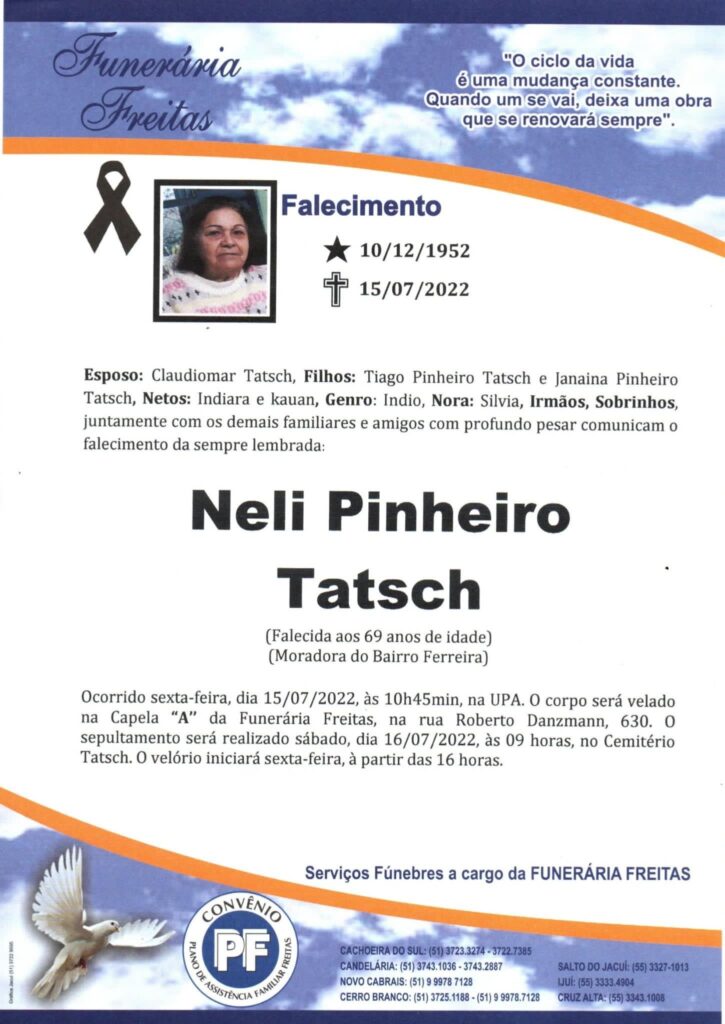 Falecimentos Falecimento / Neli Pinheiro Tatsch admin 15 de julho de 2022 Post navigation Previous: Mulher de Scooby conta qual foi a reação do marido ao descobrir gravidezNext: Seleção de novos soldados começa dia 1º de agosto Mais notícias Falecimentos MARION DA SILVA (SÃO NUNCA) Francis Soares 21 de fevereiro de 2025 Falecimentos ROMANI KEGLER NUNES Francis Soares 17 de fevereiro de 2025 Falecimentos ROMARINO “EDILON CARDOSO” PEREIRA Francis Soares 17 de fevereiro de 2025 Deixe um comentário Cancelar respostaO seu endereço de e-mail não será publicado. Campos obrigatórios são marcados com *Comentário * Nome * E-mail * Site Salvar meus dados neste navegador para a próxima vez que eu comentar. Δ