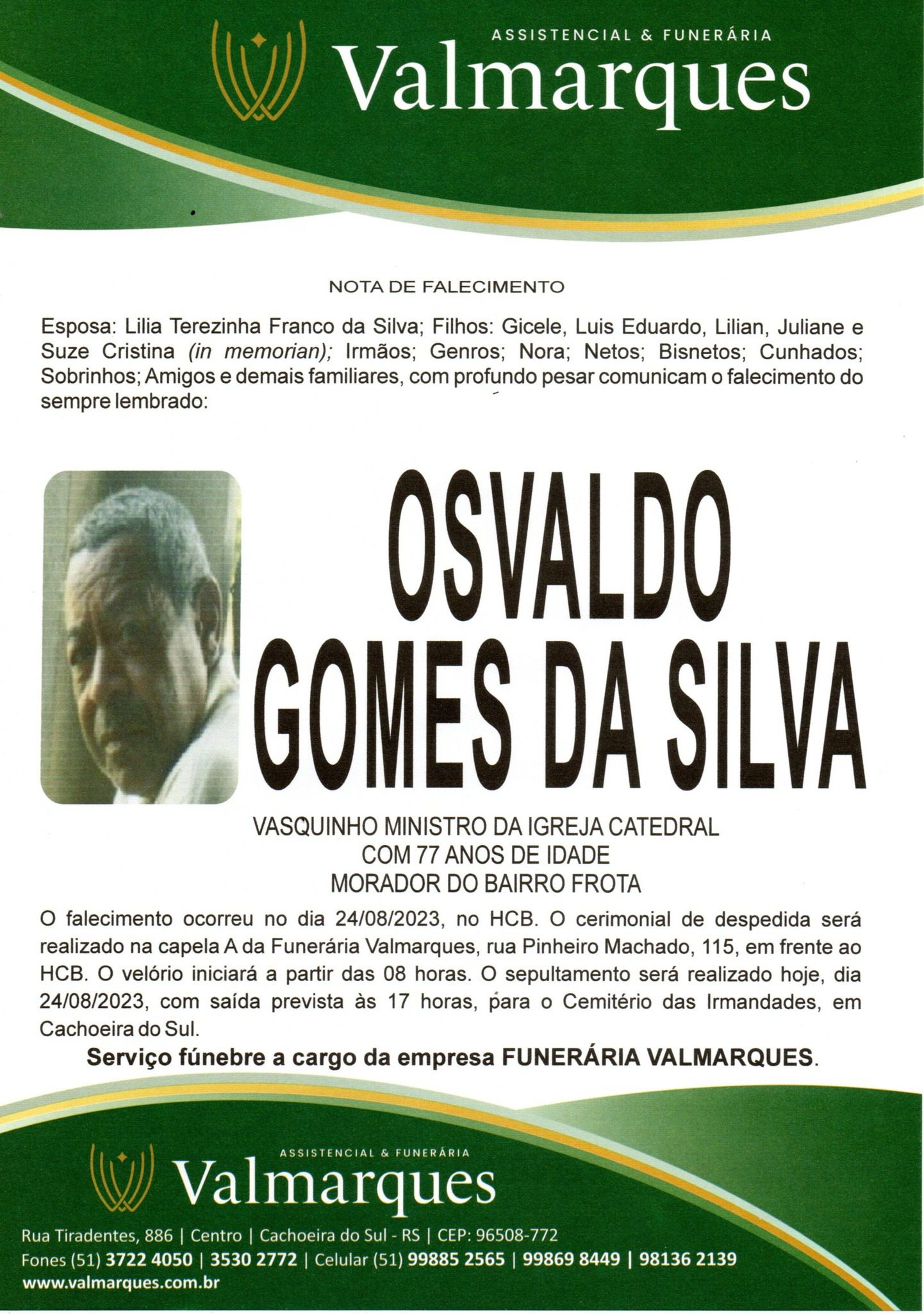 Falecimentos FALECIMENTO: OSVALDO GOMES DA SILVA Radio Cachoeira 25 de agosto de 2023 Post navigation Previous: LOTERIAS / RESULTADOS / QUINTA (24)Next: FALECIMENTO: ROBERTO WILLIG SPERB Mais notícias Falecimentos MARION DA SILVA (SÃO NUNCA) Francis Soares 21 de fevereiro de 2025 Falecimentos ROMANI KEGLER NUNES Francis Soares 17 de fevereiro de 2025 Falecimentos ROMARINO “EDILON CARDOSO” PEREIRA Francis Soares 17 de fevereiro de 2025 Deixe um comentário Cancelar respostaO seu endereço de e-mail não será publicado. Campos obrigatórios são marcados com *Comentário * Nome * E-mail * Site Salvar meus dados neste navegador para a próxima vez que eu comentar. Δ