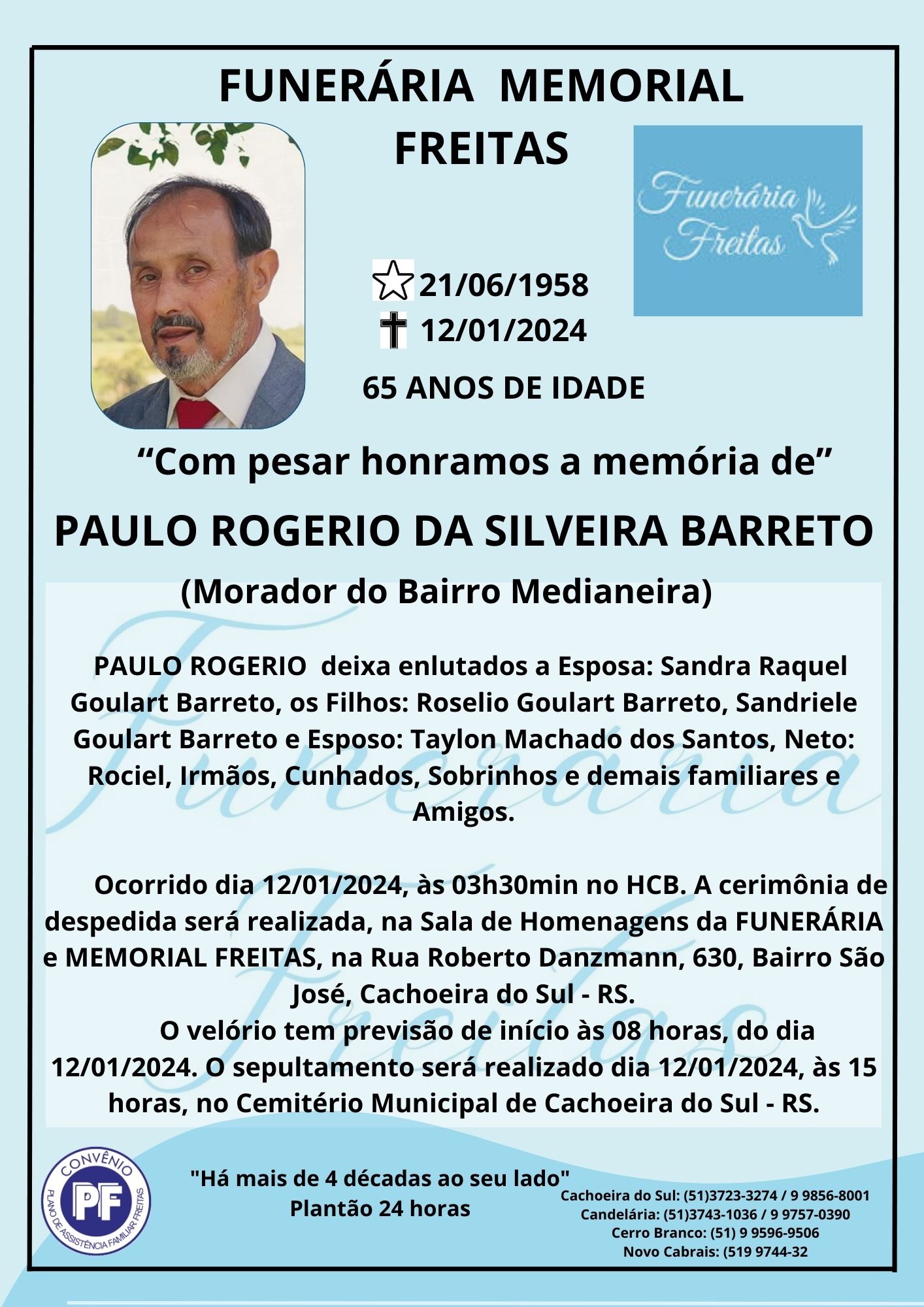 Falecimentos FALECIMENTO: PAULO ROGÉRIO DA SILVEIRA BARRETO Francis Soares 12 de janeiro de 2024 Post navigation Previous: Prefeitura de Novo Cabrais investe R$ 28,5 mil em iluminação de LEDNext: FALECIMENTO: IOLANDA DE OLIVEIRA SANTOS Mais notícias Falecimentos MARION DA SILVA (SÃO NUNCA) Francis Soares 21 de fevereiro de 2025 Falecimentos ROMANI KEGLER NUNES Francis Soares 17 de fevereiro de 2025 Falecimentos ROMARINO “EDILON CARDOSO” PEREIRA Francis Soares 17 de fevereiro de 2025 Deixe um comentário Cancelar respostaO seu endereço de e-mail não será publicado. Campos obrigatórios são marcados com *Comentário * Nome * E-mail * Site Salvar meus dados neste navegador para a próxima vez que eu comentar. Δ