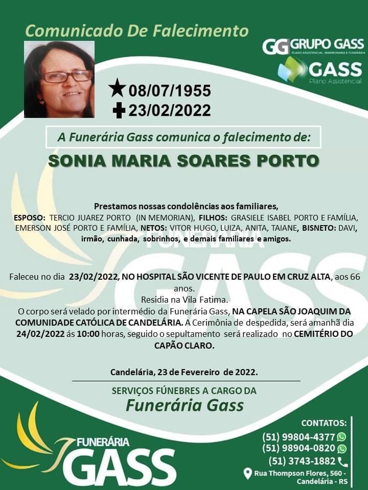 Falecimentos Falecimento / Sonia Maria Soares Porto admin 23 de fevereiro de 2022 Post navigation Previous: Censo Rural é prorrogado até dia 15 de março!Next: Confira os resultados das loterias do dia 23/02! Mais notícias Falecimentos MARION DA SILVA (SÃO NUNCA) Francis Soares 21 de fevereiro de 2025 Falecimentos ROMANI KEGLER NUNES Francis Soares 17 de fevereiro de 2025 Falecimentos ROMARINO “EDILON CARDOSO” PEREIRA Francis Soares 17 de fevereiro de 2025 Deixe um comentário Cancelar respostaO seu endereço de e-mail não será publicado. Campos obrigatórios são marcados com *Comentário * Nome * E-mail * Site Salvar meus dados neste navegador para a próxima vez que eu comentar. Δ