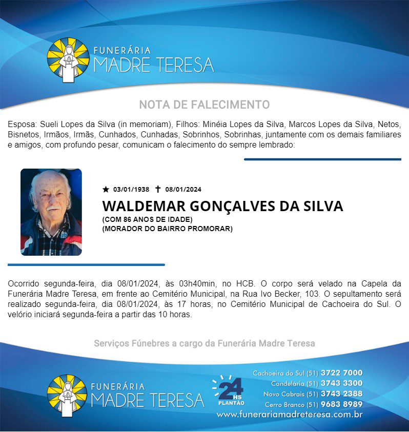 Falecimentos FALECIMENTO: WALDEMAR GONÇALVES DA SILVA Francis Soares 8 de janeiro de 2024 Post navigation Previous: Tenho mais de 60 e nunca contribui, posso me aposentar no INSS? Tire suas dúvidasNext: “Ladrão pescador” usa um anzol improvisado para roubar roupas de lojas em Santa Cruz Mais notícias Falecimentos MARION DA SILVA (SÃO NUNCA) Francis Soares 21 de fevereiro de 2025 Falecimentos ROMANI KEGLER NUNES Francis Soares 17 de fevereiro de 2025 Falecimentos ROMARINO “EDILON CARDOSO” PEREIRA Francis Soares 17 de fevereiro de 2025 Deixe um comentário Cancelar respostaO seu endereço de e-mail não será publicado. Campos obrigatórios são marcados com *Comentário * Nome * E-mail * Site Salvar meus dados neste navegador para a próxima vez que eu comentar. Δ