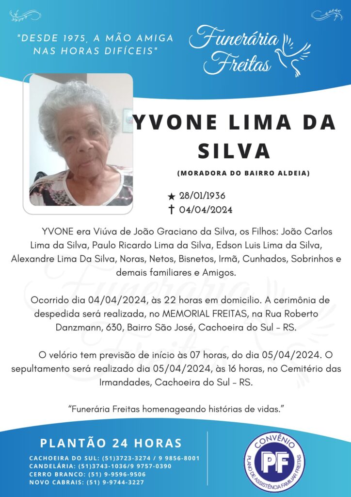 Falecimentos FALECIMENTO: YVONE LIMA DA SILVA Francis Soares 5 de abril de 2024 Post navigation Previous: Horóscopo do dia: previsão de hoje 05/04/2024 para seu signoNext: Projeto “CAO na Estrada : MPRS chega à Cachoeira, em parceria com a Coordenadoria da Mulher e CREAS Mais notícias Falecimentos MARION DA SILVA (SÃO NUNCA) Francis Soares 21 de fevereiro de 2025 Falecimentos ROMANI KEGLER NUNES Francis Soares 17 de fevereiro de 2025 Falecimentos ROMARINO “EDILON CARDOSO” PEREIRA Francis Soares 17 de fevereiro de 2025 Deixe um comentário Cancelar respostaO seu endereço de e-mail não será publicado. Campos obrigatórios são marcados com *Comentário * Nome * E-mail * Site Salvar meus dados neste navegador para a próxima vez que eu comentar. Δ