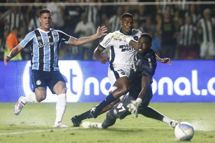 O gol, no entanto, fez o Botafogo recuar. E o Grêmio começou a aproveitar melhor os espaços. Aos 16, em dois momentos, chegou perto de empatar. Primeiro, Cristaldo recebeu bola na marca do pênalti, mas chutou em Gregore. Na sequência do lance, o camisa 10 cruzou de bicicleta e JP Galvão cabeceou por cima do gol.