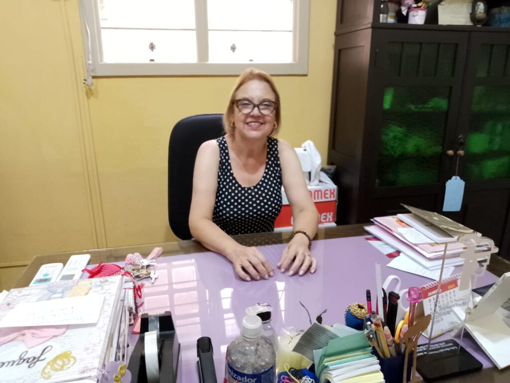 Diretora Jaqueline Schneider Somavilla explica os detalhes da reforma, que garantiu mais segurança e conforto para alunos e professores.