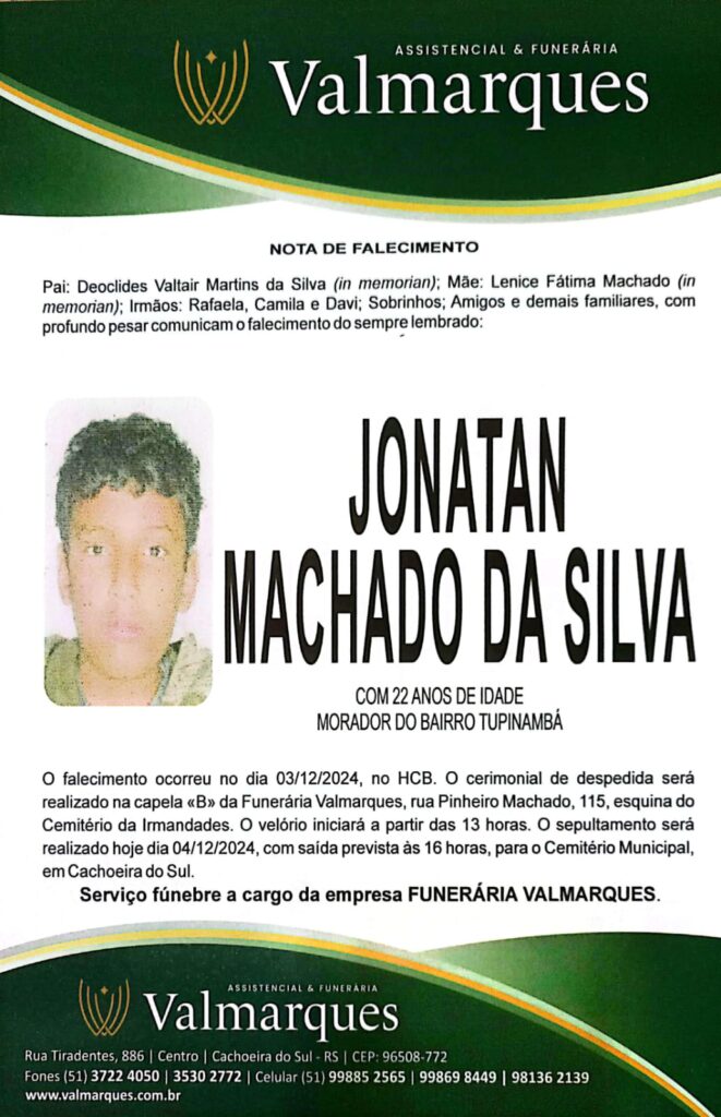 Falecimentos JONATAN MACHADO DA SILVA Francis Soares 4 de dezembro de 2024 Post navigation Previous: Criador do “Janjômetro” afirma estar sofrendo ameaças de ministros de LulaNext: VILMA SENA LOPES Mais notícias Falecimentos MARION DA SILVA (SÃO NUNCA) Francis Soares 21 de fevereiro de 2025 Falecimentos ROMANI KEGLER NUNES Francis Soares 17 de fevereiro de 2025 Falecimentos ROMARINO “EDILON CARDOSO” PEREIRA Francis Soares 17 de fevereiro de 2025 Deixe um comentário Cancelar respostaO seu endereço de e-mail não será publicado. Campos obrigatórios são marcados com *Comentário * Nome * E-mail * Site Salvar meus dados neste navegador para a próxima vez que eu comentar. Δ