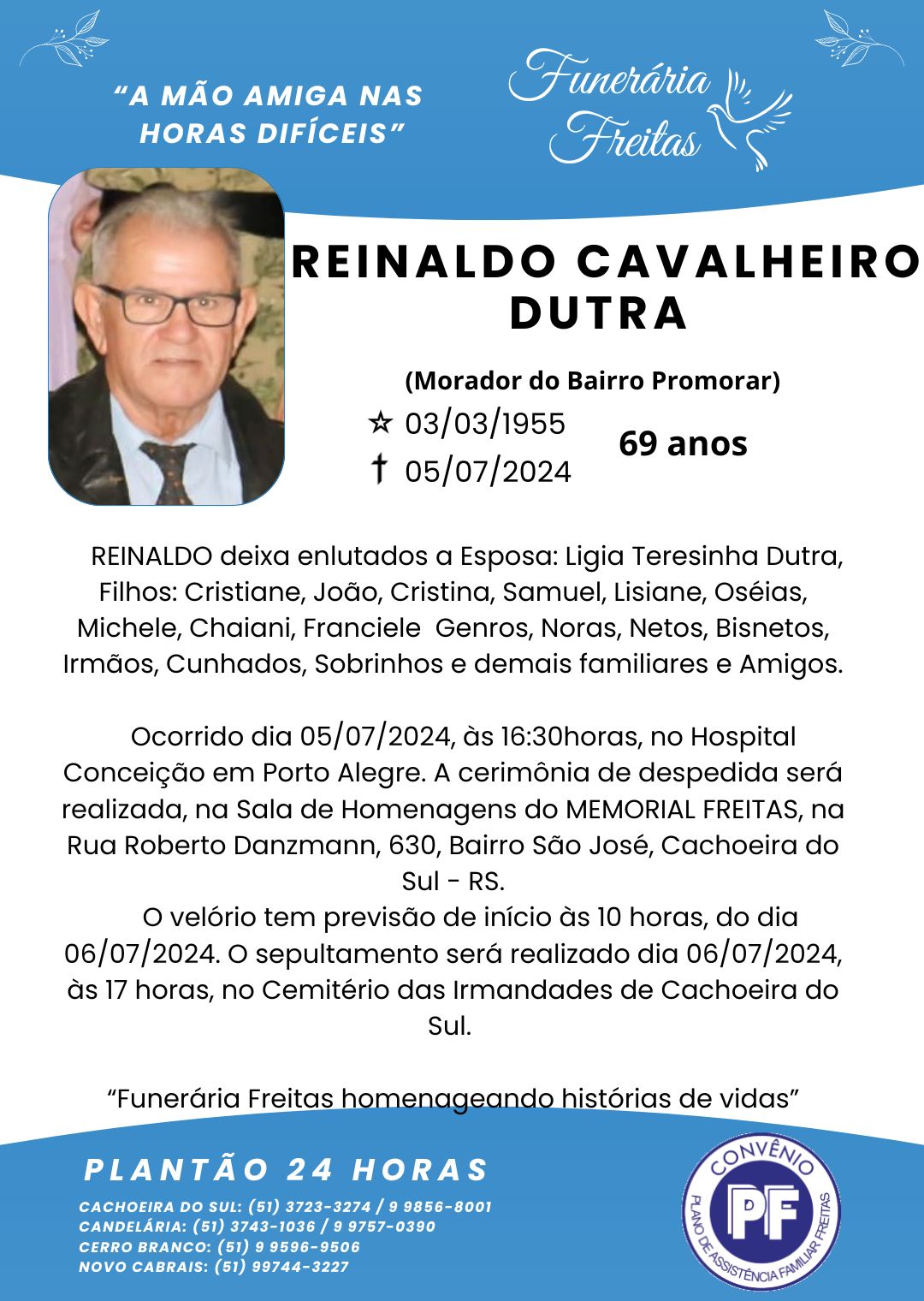 Falecimentos REINALDO CAVALHEIRO DUTRA Francis Soares 7 de julho de 2024 Nossos sinceros sentimentos aos familiares e amigos! Post navigation Previous: Incêndio criminoso em VW Parati na Av.BrasilNext: VANIA MARLI GOIS DA SILVA Mais notícias Falecimentos MARION DA SILVA (SÃO NUNCA) Francis Soares 21 de fevereiro de 2025 Falecimentos ROMANI KEGLER NUNES Francis Soares 17 de fevereiro de 2025 Falecimentos ROMARINO “EDILON CARDOSO” PEREIRA Francis Soares 17 de fevereiro de 2025 Deixe um comentário Cancelar respostaO seu endereço de e-mail não será publicado. Campos obrigatórios são marcados com *Comentário * Nome * E-mail * Site Salvar meus dados neste navegador para a próxima vez que eu comentar. Δ