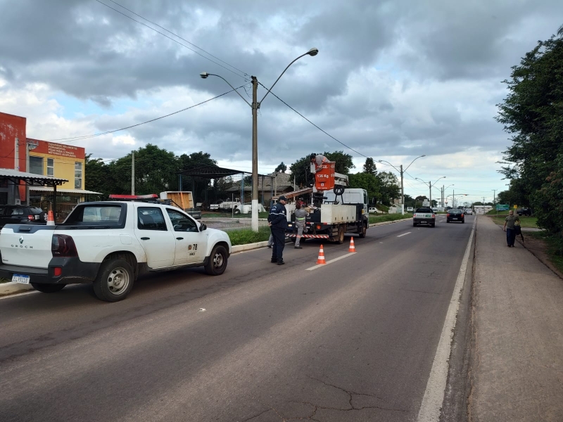 Estão atuando nesta frente de trabalho 3 eletricistas do setor de iluminação e 2 agentes de trânsito.